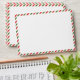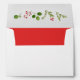 Cute red and green stripes Holiday envelope with Holiday greenery and red liner inside and Return address in the back.