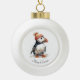 Adorn your Christmas tree with a touch of personalised winter charm with our "Merry Puffin" ceramic ball ornament. This delightful ornament features the adorable watercolor illustration of a puffin, bundled up for winter in a cosy red and white striped beanie topped with a fluffy pompom. This charming seabird brings a whimsical and joyful touch to your holiday decorations.