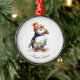 Add a touch of personalised winter charm to your Christmas tree with our "Merry Puffin" metal ornament. This delightful ornament features the adorable watercolor illustration of a puffin, bundled up for winter in a cosy red and white striped beanie topped with a fluffy pompom. This charming seabird brings a whimsical and joyful touch to your holiday decorations.