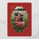 This festive holiday template features a rich red backdrop accented with shimmering foil details for a warm and joyful Christmas look. The scalloped photo frame adds a charming, storybook-inspired shape that makes your chosen picture feel instantly special. A hand-lettered “Merry Christmas” greeting shines in foil at the top, while delicate foil stars scatter across the design for a magical touch. Customizable year and name text at the bottom complete the layout, giving you a beautifully personal way to share holiday cheer with friends and family.