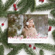 Share holiday greetings with these rustic chic Christmas photo cards featuring your favourite full bleed horizontal or landscape orientated photo. "Merry Christmas" appears as a red text overlay outlined in white, in elegant hand lettered script typography. Personalise with your custom holiday greeting, name(s) and the year along the bottom. Cards reverse to a rustic buffalo check plaid pattern in matching holiday red and white.