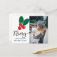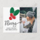 Merry Script | Red Berry Christmas Holiday Photo Postcard