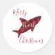 Merry Shark Christmas Red Plaid Script Classic Round Sticker
