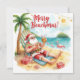 Celebrate the sunny season with this cheerful Merry Summer Holiday card featuring Santa Claus relaxing at the beach!