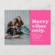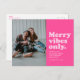 Merry vibes only fun hot pink Christmas photo Holiday Postcard