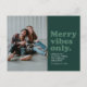 Merry vibes only this holiday season! Send a fun retro-style holiday card with this one-photo design. The throwback green on green type reads "merry vibes only" and it also has room for a custom message, name and year. The back features room for a custom message but can be left blank so you can write a more personal message.