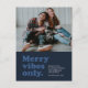 Merry vibes only this holiday season! Send a fun retro-style holiday card with this one-photo design. The throwback type reads "merry vibes only" and it also has room for a custom message, name and year. The back features room for a custom message in a matching classic navy but can be left blank so you can write a more personal message.