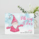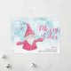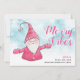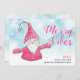 Merry Vibes Snowy Blue Cute Pink Gnome Christmas Holiday Card