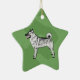 This Norwegian Elkhound sketch is on an ornament with a Christmas green background. You can add text or images to the back as well.