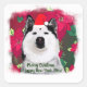 Merry Xmas, Happy New Year funny tee with husky dog and red flowers background. Easy to customize, personalize your text.