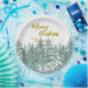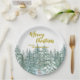 Merry xmas trees forest Modern Gold script Holiday Paper Plate