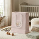 The aesthetic follows a "Winter Blush" theme, utilizing soft pastel pinks, creamy whites, and gentle beige tones to create a serene nursery atmosphere.