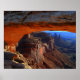 Mesa Arch is one of the many stunning features of Canyonlands National Park in Utah. Here, the morning sun glows orange on the rocks of Mesa Arch at sunrise.