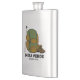 The product is a good size and came exactly as it was pictured. The lid is not attached to the flask, which could be dangerous on drunken nights... The print came out surprisingly well and looks very sharp. Would definitely recommend.