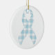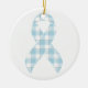 Mesothelioma Awareness Plaid Light Blue Ribbon Ceramic Tree Decoration