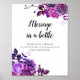 Message in a bottle print. Purple flowers wedding Poster