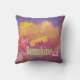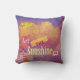 The wall, in the original artwork by ZoeSPEAK on this inspirational Throw Pillow, is an old red brick wall with a mural on stucco which is crumbling away. The mural is a picture of puffy clouds in the sunset, all pink and bright yellow at the top against a deep blue sky. The message is to let the sunshine in.
