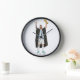 I received this as a birthday gift from my husband to replace a clock that had broken. It was perfect, pictures of my sweet family to see at every hour of the day. The size of the pictures looks nice for the size of the clock and I love looking at it! The only downside is there is no cover for the battery on the back, which makes me nervous having little kids running around the house, but an easy fix with some tape. The printing turned out clear, considering they were all cell phone pictures. Some of them look slightly grainy upon getting close up. But so nice overall!