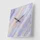 Messy Abstract Blue and Beige Paint Strokes Square Wall Clock