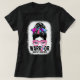 Messy Bun Leopard Blue Pink Ribbon Clubfoot Warrio T-Shirt