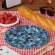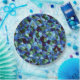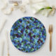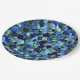 Messy of green and blue irregular mosaic overlaid paper plate