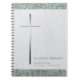Modern and simple silver metal Christian Cross with small drop shadow on granite background (digital images). Design on Memorial spiral notebook as guest book. You can easily change text (colour, font, size and position) by clicking the customise button. Available with the same cross (large drop shadow), the same design with copper and golden cross. Matching Memorial service invitation, Sympathy Thank You cards and labels.