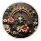 Pretty steampunk themed knobs with pink flowers, copper and gold metal gears and other metal elements.