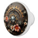 Metal Gears, Pink Flowers, Steampunk Themed Ceramic Knob