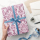 Metal Glitter Pink Rose Gold White Damask Elegant Wrapping Paper