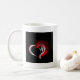 Metal heart with a red crest on black background. Ready to be customised with your text.