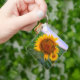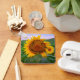 This image is titled "Giggles" and features a smiling sunflower in a field.