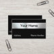 A metallic look nameplate in smooth silver stainless steel look chrome on the front of the card with a dynamic black background gives a bold, unique 3d look professional-looking business card. Easily customise with your own information. Use the matching silver grey stylish font shown or easily change the font style and colour. Also you can easily change the black colour background to any colour. Just click on "Customise it" and then "edit" and then click on "background" to change it. A unique looking card, especially great for industrial, skilled trades in construction and building occupations, automotive, etc. More information can be put on the back as well on the same slick black background. Printed on paper, not actual metal. A strong business card that stands out from the rest.