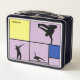 This eye-catching pillow showcases the iconic geometric shapes and bold primary colours of the Dutch painter Piet Mondrian's signature style, fused with the energy and movement of three hip-hop dancers captured in vibrant violet and yellow, with sleek black accents.