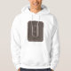 A cool design of the number nine. This design is a pressed metal nine design. The number nine is set in a metal rectangle that has a rivet in each corner of it. Very effective. This metal nine design looks great on this mens hoodie. Perfect for yourself or as a gift