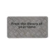 This cool metal looking design book label has the effect of an embossed aluminium plate. There is no texture, just an image, but it looks like silvery metal with a cross hatched pattern of small bars. It says, "From the library of," but you can change this if you want.