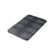 This image depicts a close-up view of a diamond plate surface. The metal is dark grey and has a slightly textured finish. The diamonds are arranged in a repeating pattern, creating a sense of depth and dimension. The surface appears to be slightly worn, with some scratches and imperfections. The overall effect is one of ruggedness and durability.