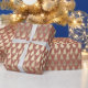 Metallic 14k Gold Glitter Xmas Trees on Rose Gift Wrapping Paper