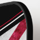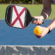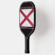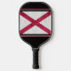 Both sides of this pickleball paddle show an image of a metallic looking Alabama state flag, in the customary colours of red and white. The image is placed on a black background with borders of red and white stripes. One side has your monogram in white at the bottom.