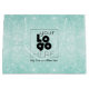 Available in matte or glossy finish, promotional gift bags custom branded with your business logo add a professional touch to your corporate gifts, giveaways, and retail shopping bags while advertising your business. Made by Digiwrap. No minimum order quantity and no setup fee. This bag is set on a robins egg aquamarine blue metallic faux foil glitter dust printed background, ready for your black or dark coloured logo graphic.