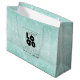 Metallic Aqua Blue Glitter Logo Paper Shopping Bag