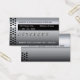 Designed with Metal in mind! Are you a hard-hitting, Autobody Shop competitor, a local Automechanic or Sand Blaster for the heavy metal industrial plants? Take a peak inside the Metallic Dimensions for a thematic silver and grey tone to fit your business image. 100% Custom availability, this metallic simulated design has both front and back 3- dimensional metal.  Whether an Autobody Specialist, Automotive Mechanic, or simply a Muffler Renovator, this design is fully compatible. Simply remove the image/text that says "Auto Body" on the card, and attach one of the images hidden below the card. The images below the card are not visible until moved onto the card itself. Scroll over the empty space below the card, and ants will show up in the white space. Click on one and it will highlight in the image/text box. Move the image onto the card from the empty white space. Designer Suggestion:  For a more expensive, stern look in the automobile industry, place this image on the Indestructible Paper.