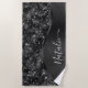 Easily personalise this black brushed metal and glamourous faux glitter patterned beach towel with your own custom name.