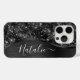 Easily personalize this black brushed metal and glamorous faux glitter patterned phone case with your own custom name.