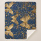 Metallic Blue Butterflies with Gold Vines Sherpa Blanket