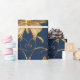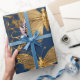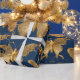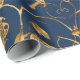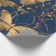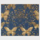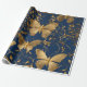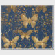 Metallic Blue Butterflies with Gold Vines Wrapping Paper
