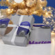 Metallic blue 3d "Merry Christmas" and tree ornaments design with personalised typography to spread festive joy this Christmas.
