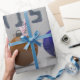 Metallic Blue Font And Ornaments Design Christmas Wrapping Paper