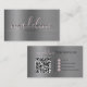 Metallic Brushed Steel Pale Pink Script Qr Code Business Card