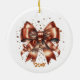 Embrace the metallic trend this season with a delightful holiday ornament adorned with a copper metallic bow set against a timeless leopard print backdrop. The year is elegantly displayed on the reverse side of the ornament. This bow-themed decoration brings a refined elegance to any Christmas tree, complemented by watercolor speckles and the copper bow motif on the back as well.