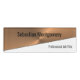 This professional magnetic back name tag features a name in black centred on the faux copper flare background at the top. The title is below left over a diagonal white background. Personalise the text fields or click customise to select a font style, size, and colour you prefer.